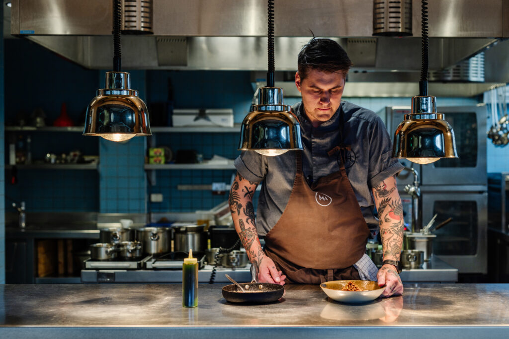 Nord-Norge er vill og vakker, pittoresk og rå, men også urban og moderne. Kontrastfylt – akkurat som maten vi serverer. Mathallen Tromsø byr på en ekte nordnorsk matopplevelse, basert på kortreiste og arktiske råvarer. Vi samarbeider med dedikerte lokale produsenter, som Finnes Gård, Halvors Tradisjonsfisk og Mack bryggeri. Restauranten er moderne, varm og innbydende – med et vinutvalg som både utfordrer og utfyller måltidet. Her får du smaker fra hav og land, skapt med lidenskap og nordnorsk gjestfrihet.